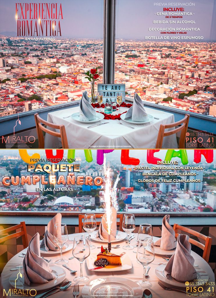 En el año 2007, nace un concepto único en el corazón de la Ciudad de México, en el emblemático Centro Histórico. MIRALTO RESTAURANTE BAR, ubicado en el piso 41 de la Torre Latinoamericana, se convierte en un lugar perfecto para disfrutar de la ciudad más grande del mundo. Miralto rescata los sabores tradicionales de la comida mexicana a lo largo de su historia junto con elementos internacionales.